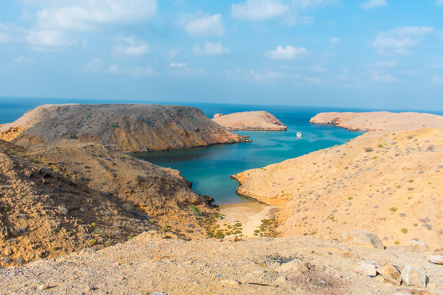 Take the boat back across to the car park and head to White Sands Beach to camp for the night(22.89329, 59.22217).