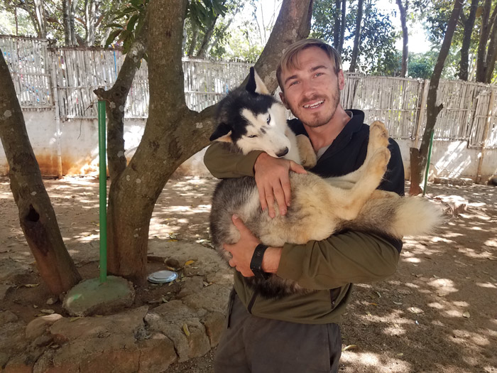 James holding the husky at our workaway