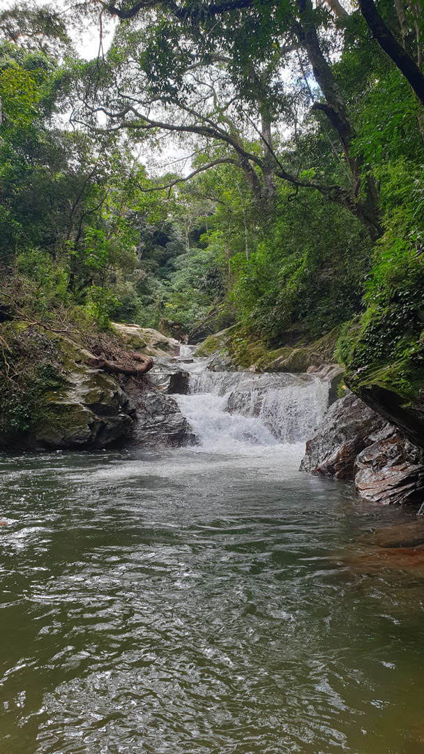 The second waterfall , down the steps is smaller but just as amazing. This one is deeper and you can jump in and swim under the cascading cold water.